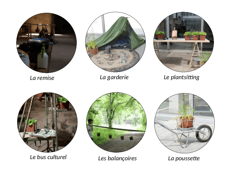 Ce projet a donné lieu à divers échos pour promener mes salades : un système de plantsitting, un bus culturel, des balançoires, une poussette.