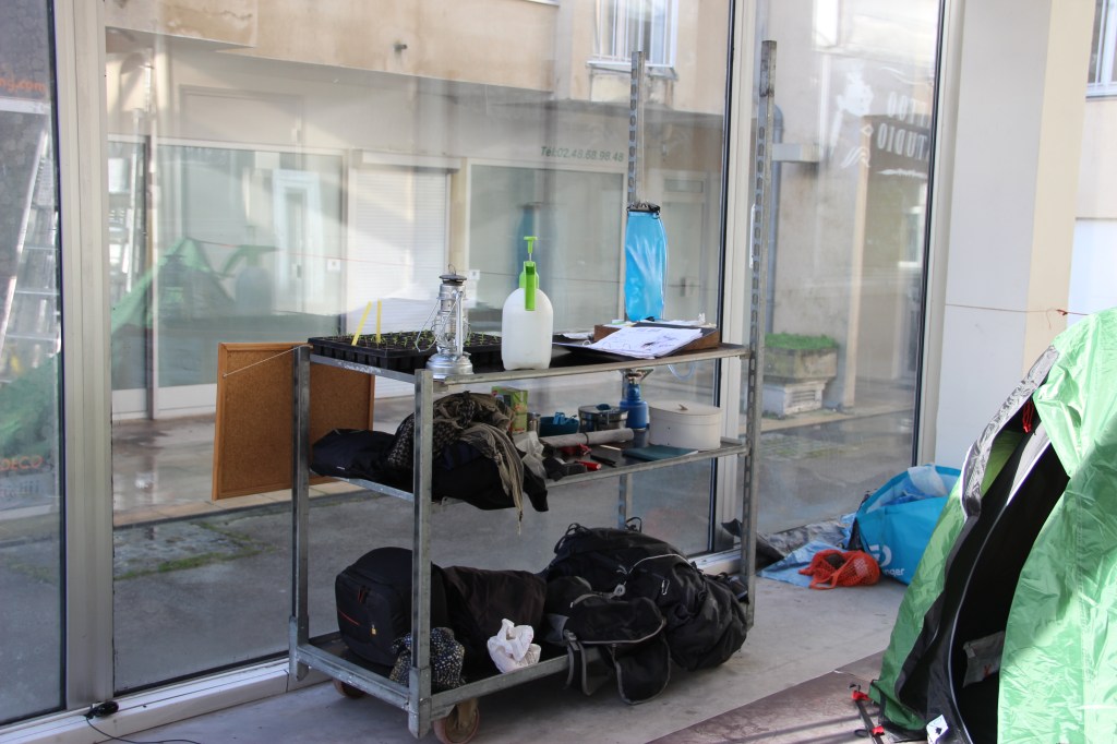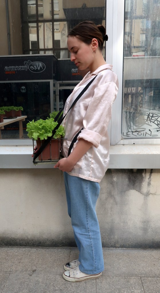 poésie et de tendresse. J’ai donc semé des graines de laitue pour les accompagner tout au long de leur cycle de vie, en leur faisant écouter de la musique douce, en leur chantant des berceuses, en les promenant, en accentuant le rôle du veilleur, entre poésie et absurdité. Pour réaliser cette veille, j’ai habité un espace de la ville – Le Coin, enclos des jacobins, Bourges – durant cinq sessions de deux nuits et trois jours, en les mettant en pension entre temps chez le pépiniériste.