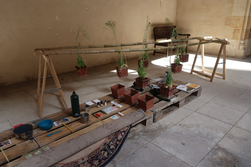 Présenté ici au Palais Jacques Cœur, le projet est à l’état de réserve : comme une frise chronologique, il restitue le projet à travers les outils utilisés et les images extraites de vidéos qui documentent l’expérience.