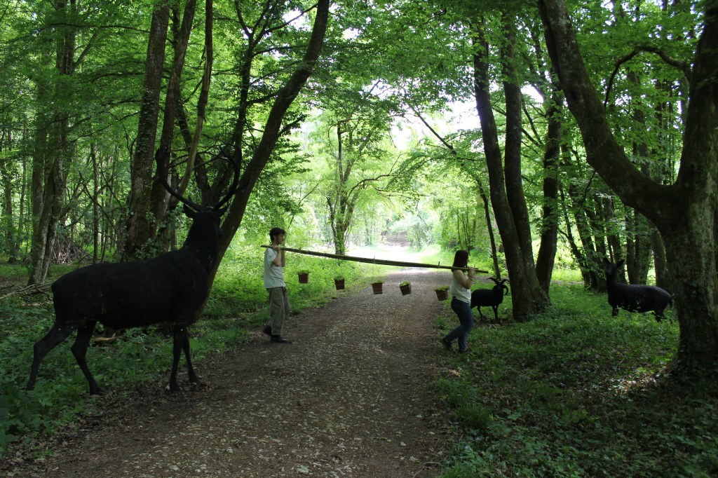 Les balançoires ont été réalisées dans la forêt d’Allogny lors d’une semaine d’atelier avec l’artiste Olivier Leroi.
